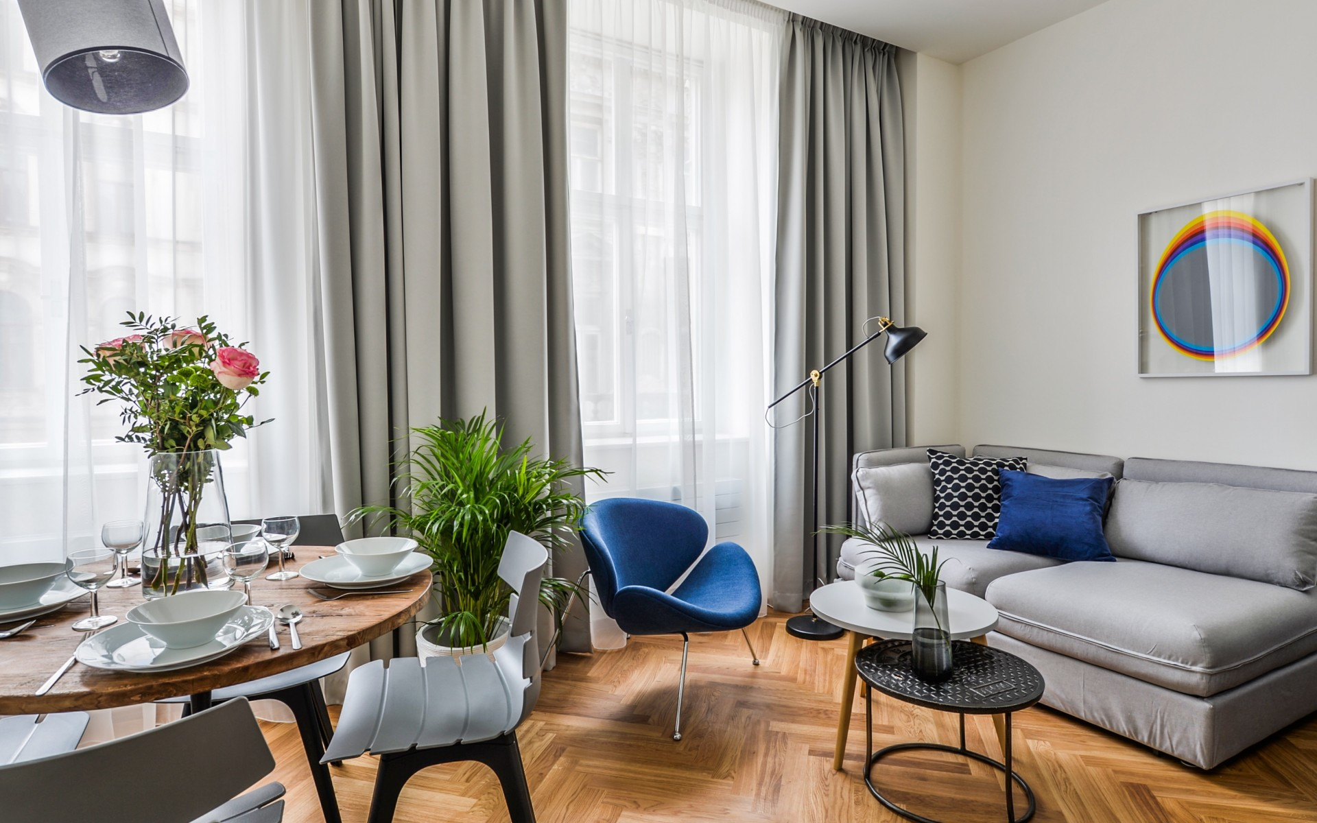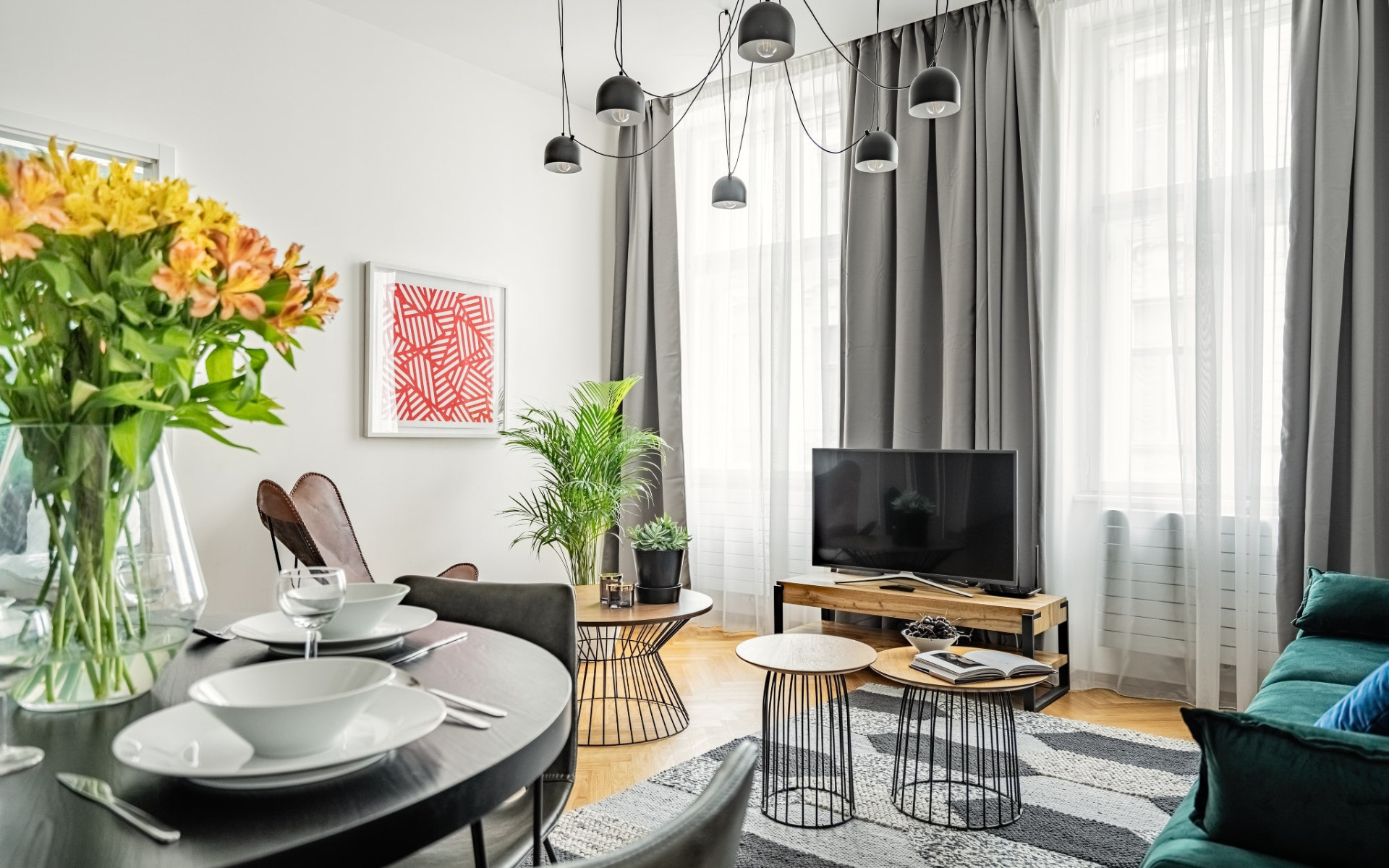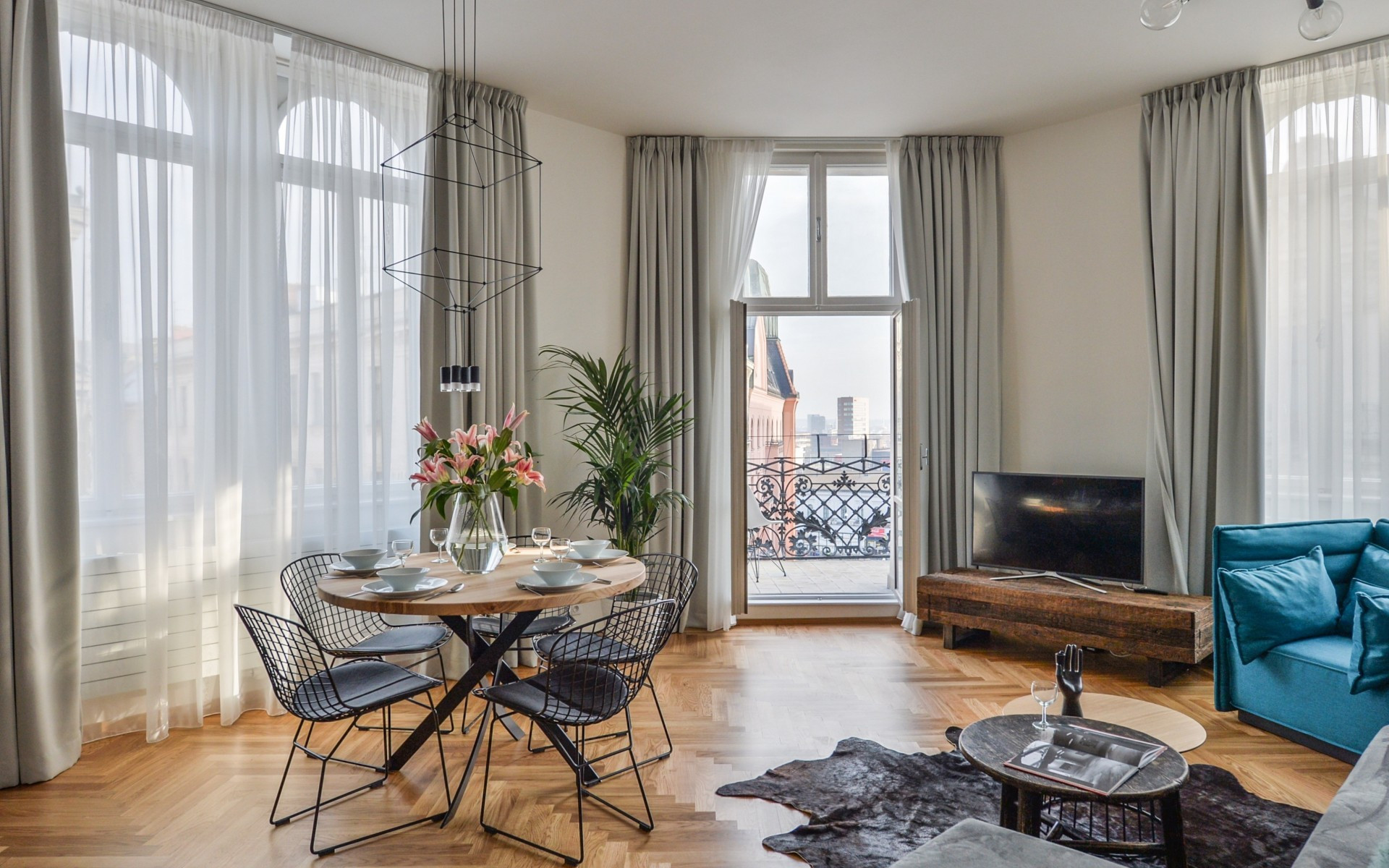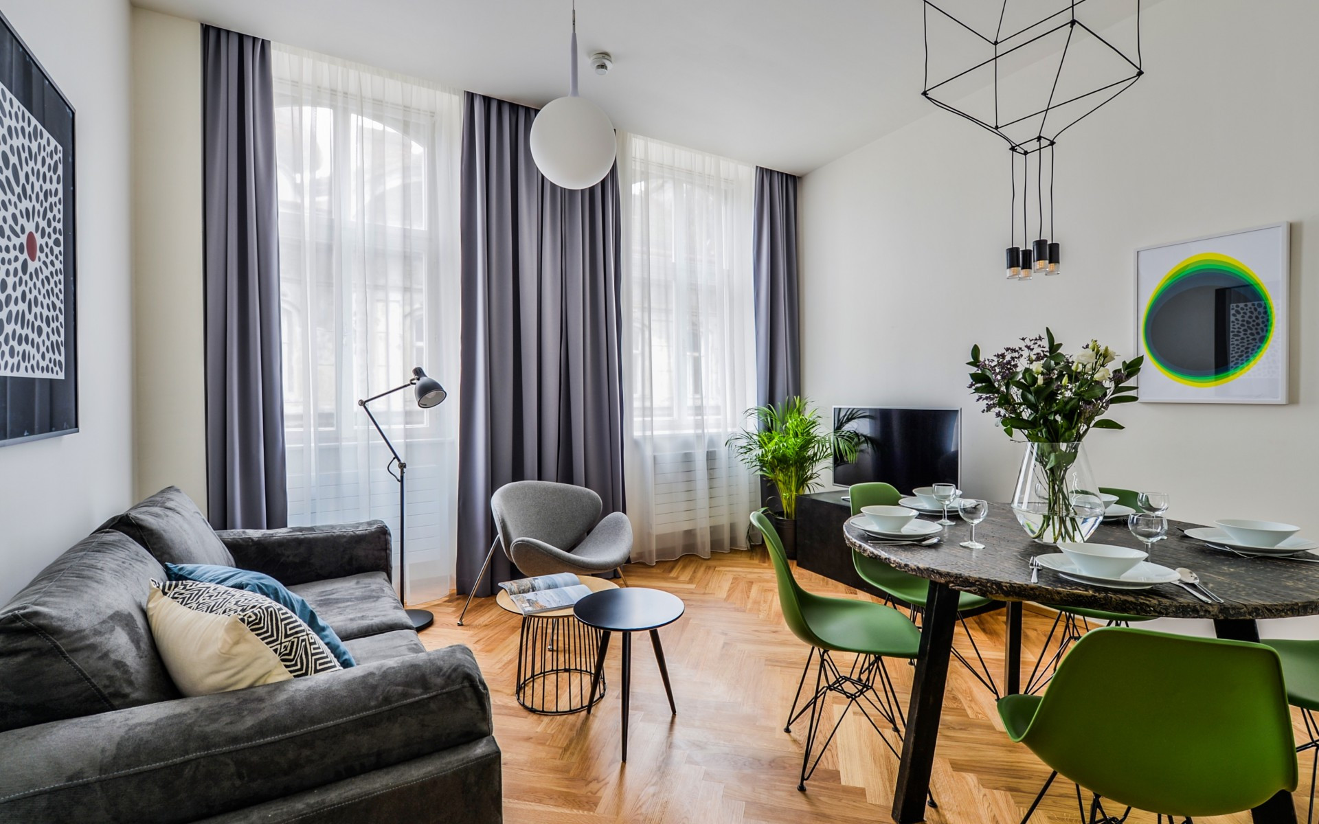 Vybavení apartmánů zahrnuje bezplatnou Wi-Fi, výtah, klimatizaci, pračku a sušičku, satelitní televizi s přístupem k internetu a mnoho dalšího. Cena ubytování zahrnuje týdenní úklid, kompletní výměnu povlečení a ručníků. Dodatečný úklid je možný za příplatek 15 EUR. Apartmány zdobí renovovaná kastlová okna, stylový, zároveň však pohodlný nábytek a původní parkety a koupelny s mramorovými kachličky.