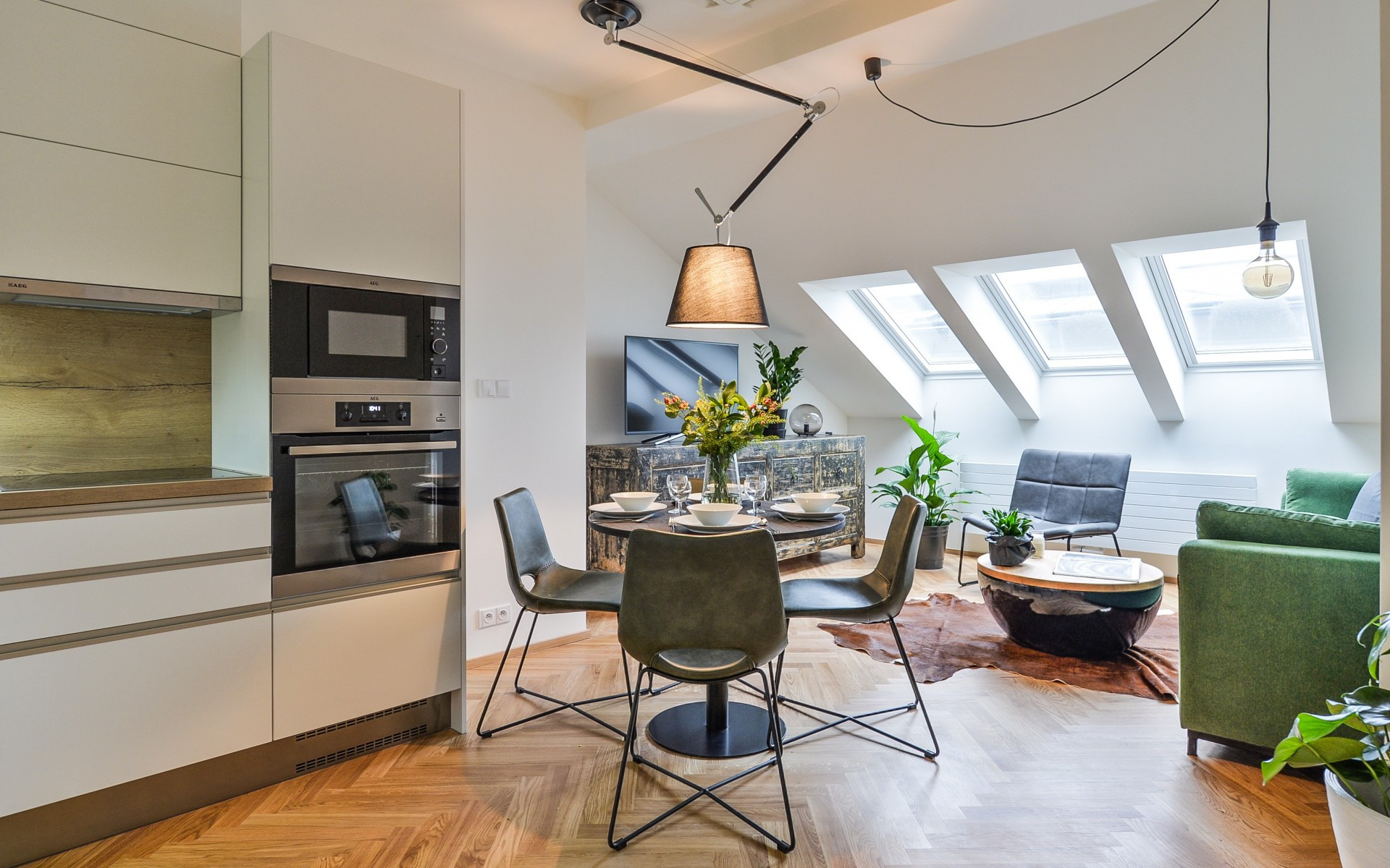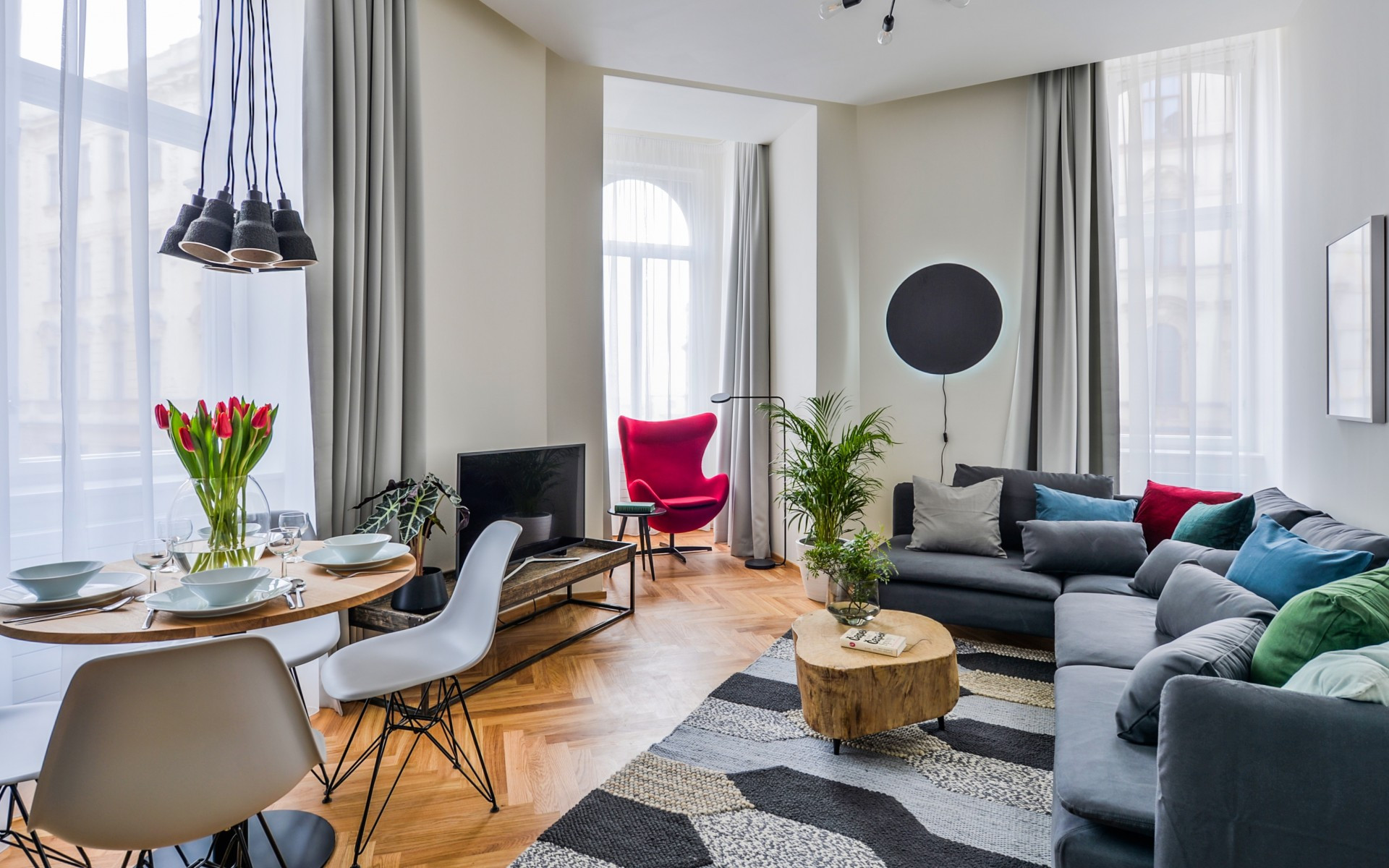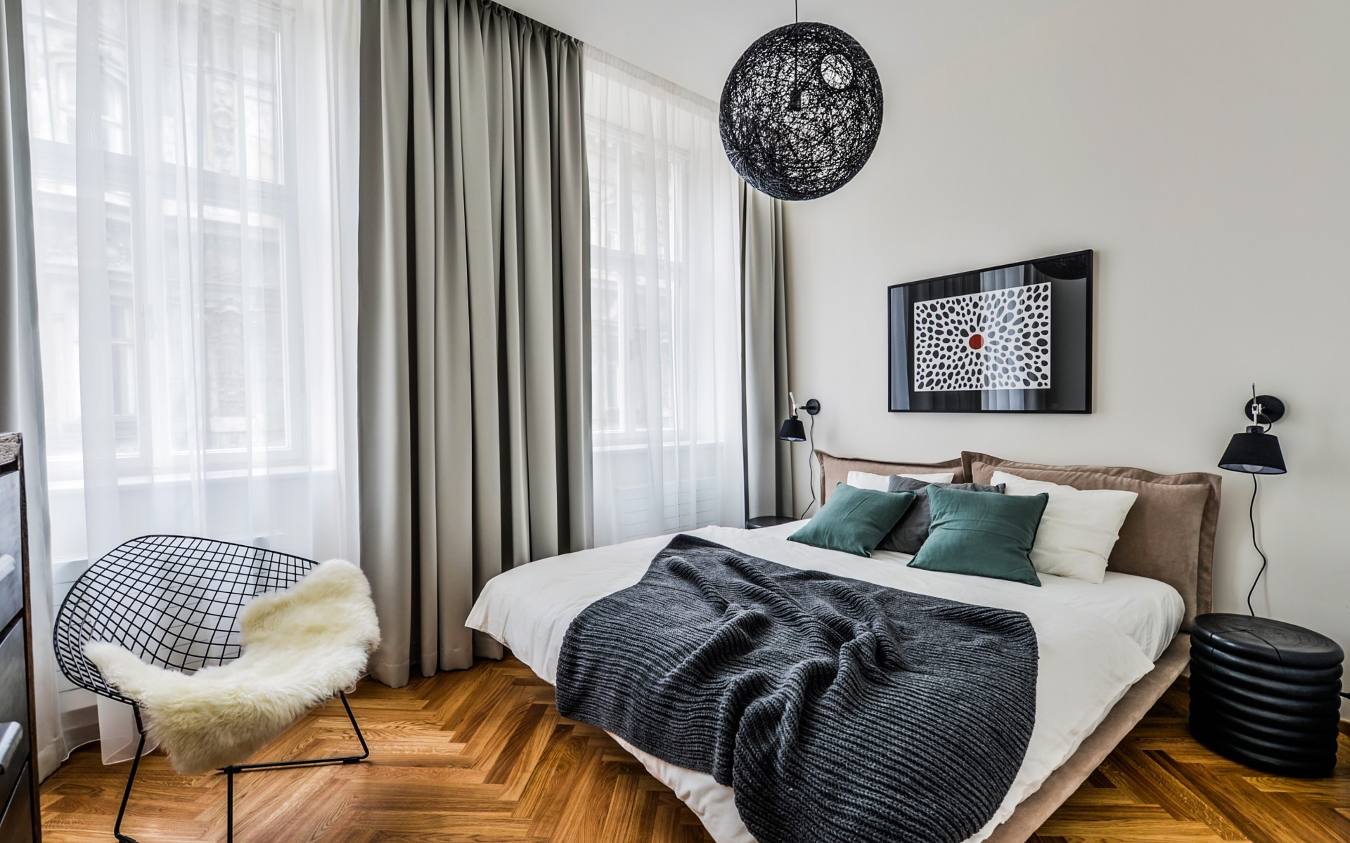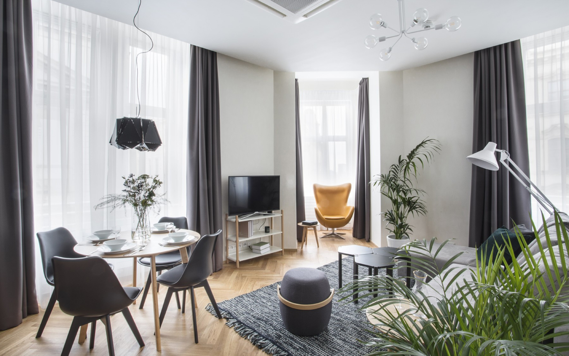 Vybavení apartmánů zahrnuje bezplatnou Wi-Fi, výtah, klimatizaci, pračku a sušičku, satelitní televizi s přístupem k internetu a mnoho dalšího. Cena ubytování zahrnuje týdenní úklid, kompletní výměnu povlečení a ručníků. Dodatečný úklid je možný za příplatek 15 EUR. Apartmány zdobí renovovaná kastlová okna, stylový, zároveň však pohodlný nábytek a původní parkety a koupelny s mramorovými kachličky.